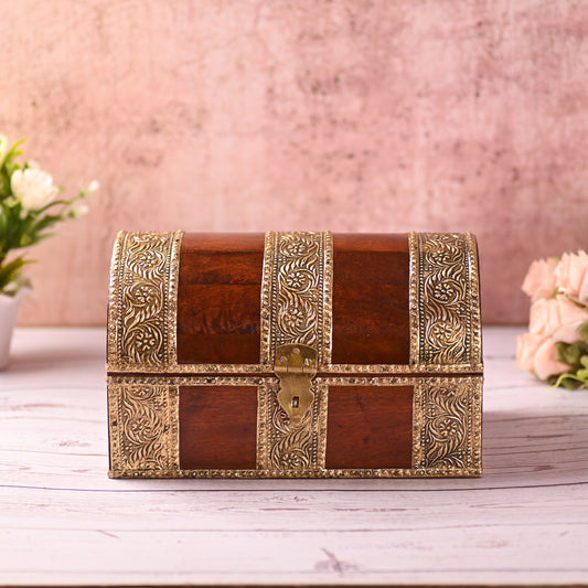 Wooden Jewellery Box for Women Jewel Organizer Square Carving with Brass Corner