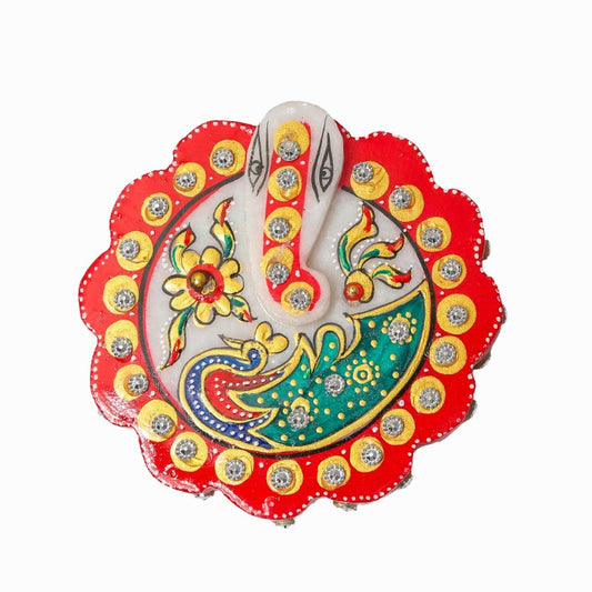 Handmade Round Ganesh Chopra Decorative Showpiece Multicolour Marble Chopda