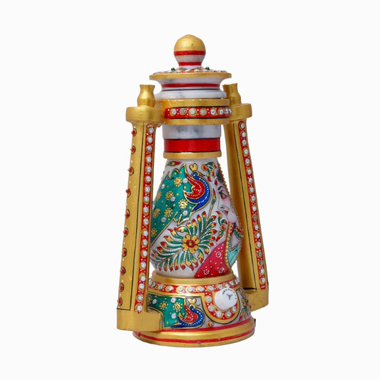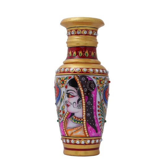 Decorative Marble Flower Vase | Round Shape Beautiful Peacock Style Handpainted Work Showpiece Vases for Home Decoration