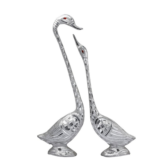 Home Decor White Metal Beautiful Swan Pair Statue Decorative Showpiece