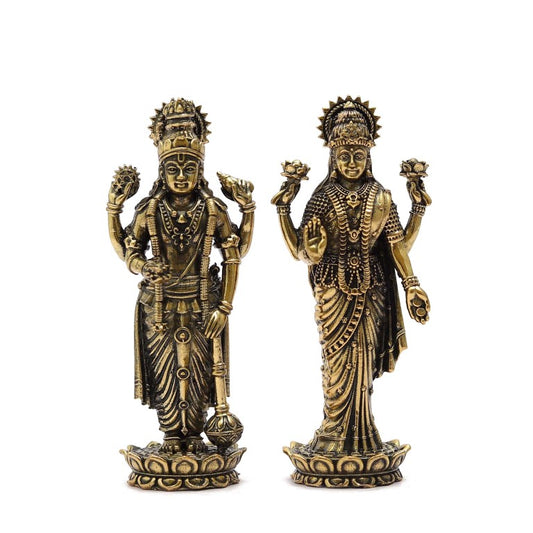 Brass Pair of Maa Lakshmi Vishnu Ji Standing Statue MATA Laxmi Vishnu Murti Lakshmi Narayan Idol for Home Temple Diwali Pooja
