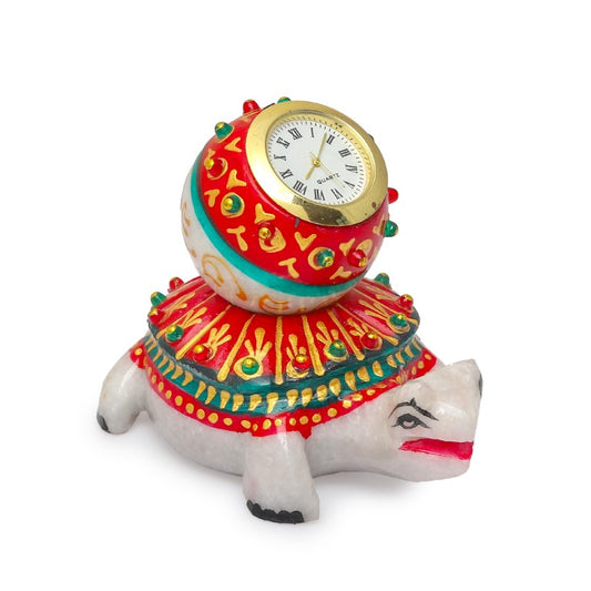 Meenakari Work Decorative Office Table Marble Ball Shape Clock with Tortoise