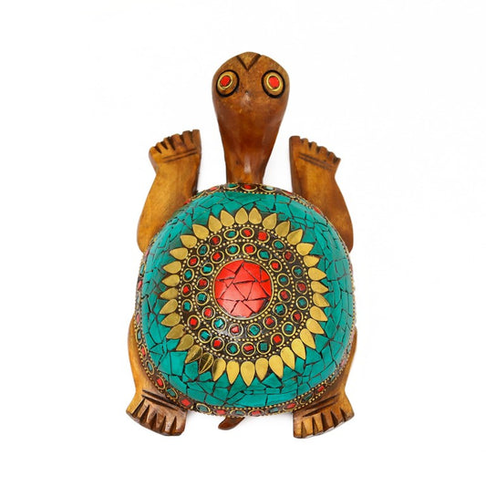 Wooden tortoise with stones and magical numbers Lo Shui Square Nine Hall Diagram; feng shui vastu