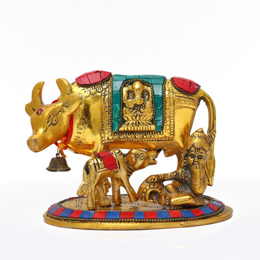 Engraved Cow and Calf & ladu gopal Statue for Home, Living Room, Office Decor | Showpiece for Decoration, Gift