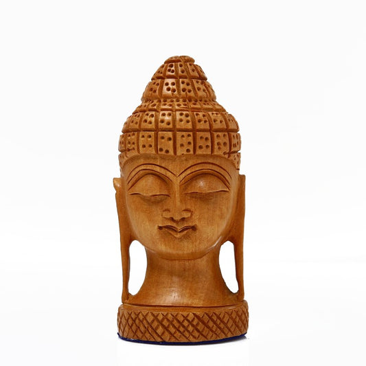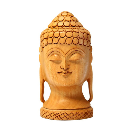 Wooden Fine Buddha Head Idol Statue Decorative Showpiece Figurine Meditation Buddha for Home Decor Mandir Temple Pooja Room Living Room Table Office Decorative Gifts