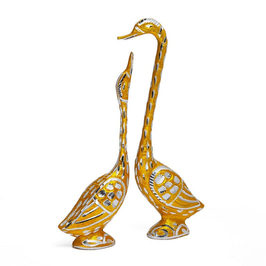 Pair of Kissing Duck, Swan Showpiece Love Couple Bird Statues Set | White Metal Swan Love Birds Pair Feng Shui Idol Couple Wedding Gift & Home Decor