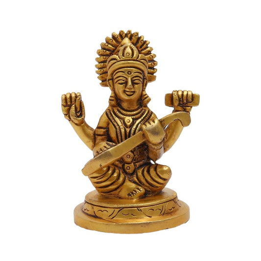 Brass Maa Saraswati Idol Murti Statue for Home Pooja Puja Mandir Décor