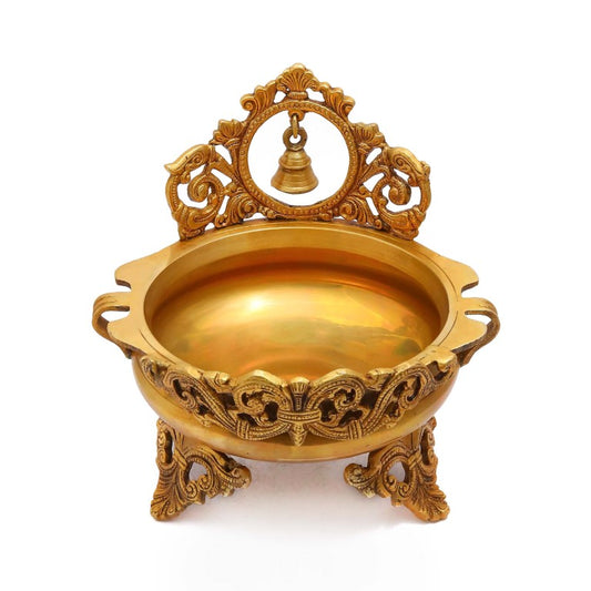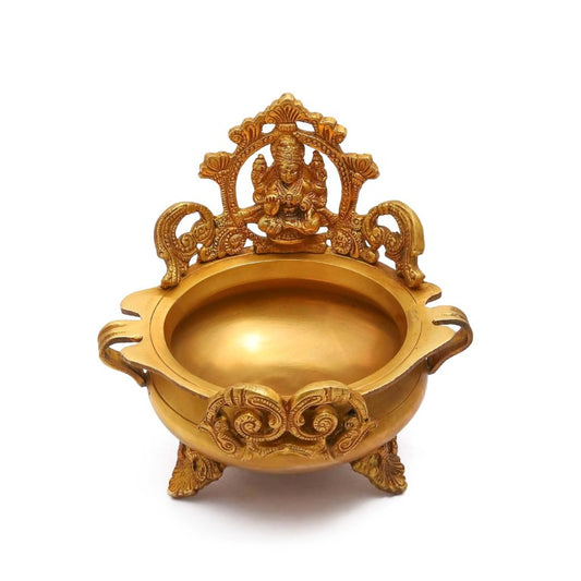 Brass Ethnic Indian Carved Laxmi Design Brass Urli Decor Bowl
