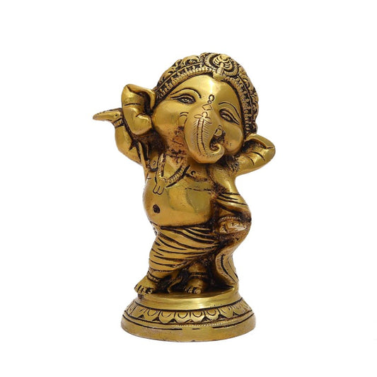 Brass Music Ganesh Idol Baby Ganesh Playing Flute In Standing Poistion Murti Ganesha Figurine Vinayak Sculpture for Home Entrance Ganesh Chaturthi Bal Ganesh Murti Bansuri Ganesh Statue