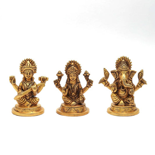 Brass Laxmi Ganesha Saraswati Murti Idol Puja Gift Home Décor