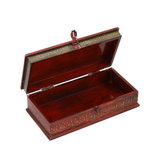 Wooden Jewellery Box for Women Jewel Organizer Square Carving with Brass Corner