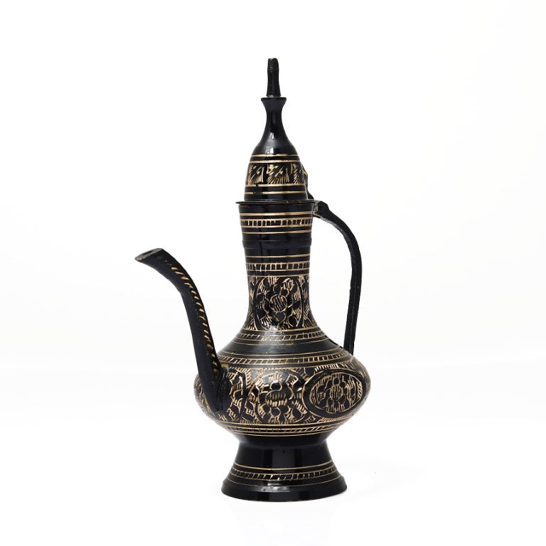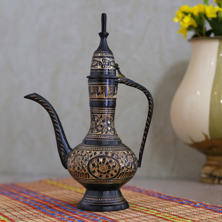 "Introducing the Regal Brass Surahi, an exquisite decorative jug that brings a touch of traditional Indian craftsmanship to your home. Handcrafted from high-quality brass, this elegant surahi features intricate designs and a polished finish, making it a stunning addition to any decor. The surahi's graceful curves and ornate detailing reflect the rich heritage of Indian artistry, combining functionality with timeless beauty.
