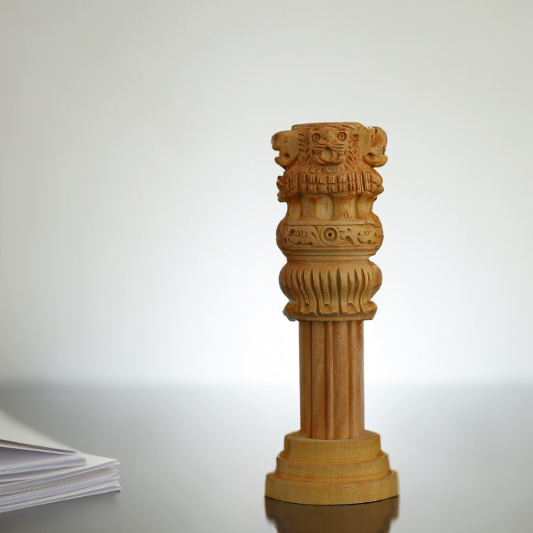 Wooden Ashoka Stambh Desk Ashoka Pillar Ideal for Advocate Tabel Office & Home Decor Showpiece Best for Gifting Purpose
